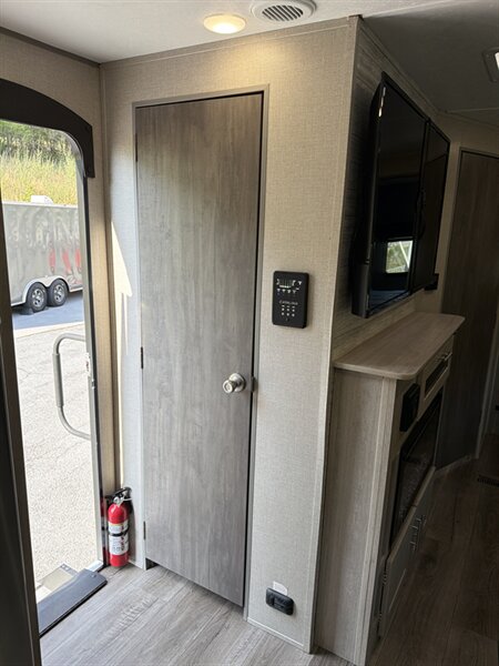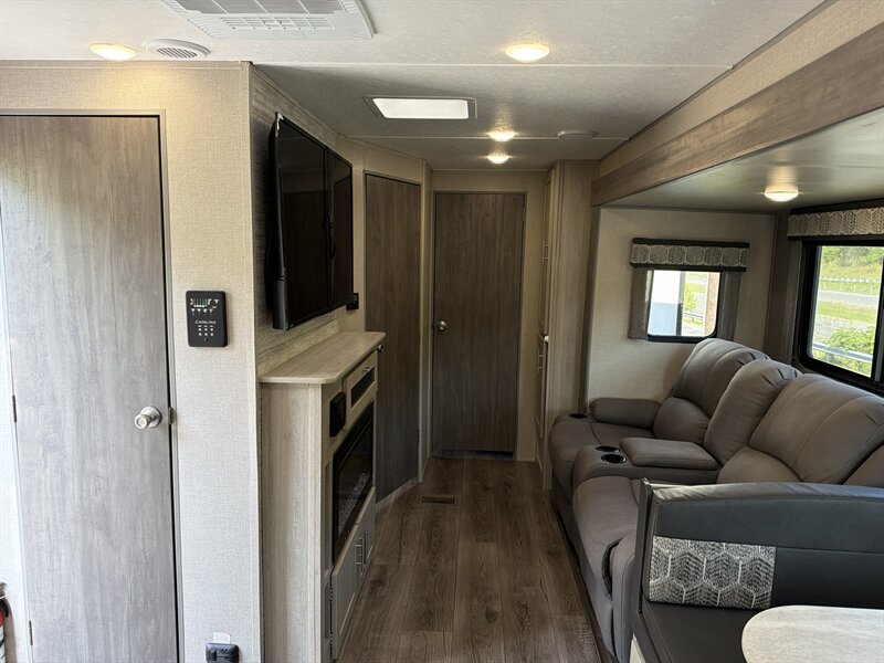 - Exterior storage compartments (including a pass-through style compartment where the floorplan allows) are finished with lockable baggage doors and provide accessible stowage for gear and camping essentials.