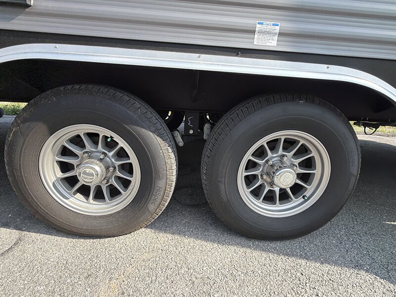 - Built on a steel chassis with leaf spring suspension and rated tires on styled wheels appropriate for the trailer’s gross vehicle weight rating.